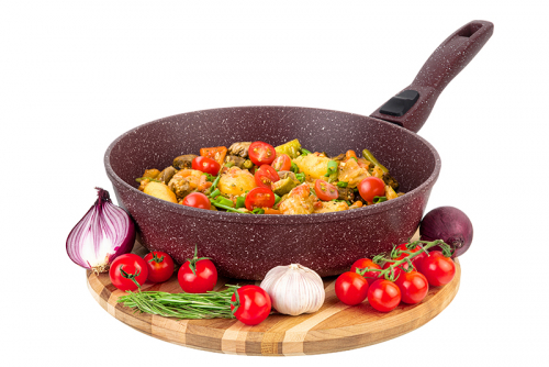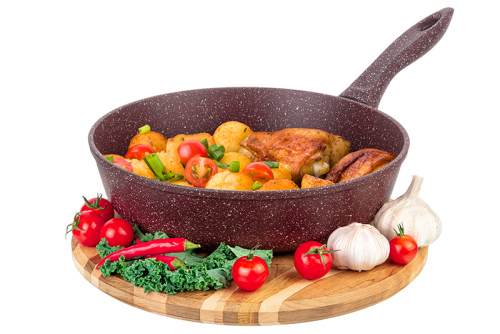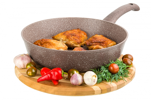 Без акции 2449 руб! Сковорода глубокая 26 см ГАРМОНИЯ ВКУСА "Коричневый мрамор" ИНДУКЦИЯ, без крышки, с/р, 47*27*10 см