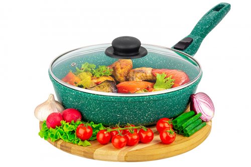 Без акции 2720 руб! Сковорода глубокая 26 см ГАРМОНИЯ ВКУСА "Изумруд" С КРЫШКОЙ ф26, с/р, 47*27*12,5 см