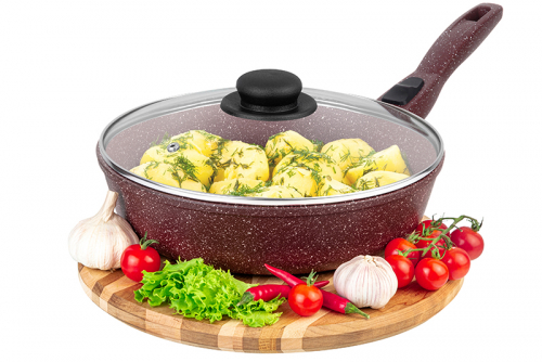 Без акции 2720 руб! Сковорода глубокая 26 см ГАРМОНИЯ ВКУСА "Рубиновый дуэт" С КРЫШКОЙ ф26, с/р, 47*27*12,5 см