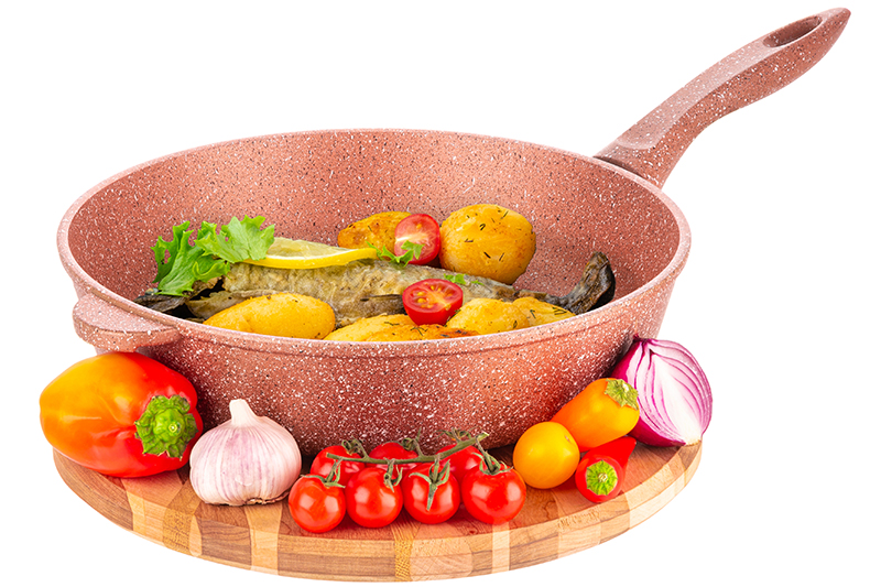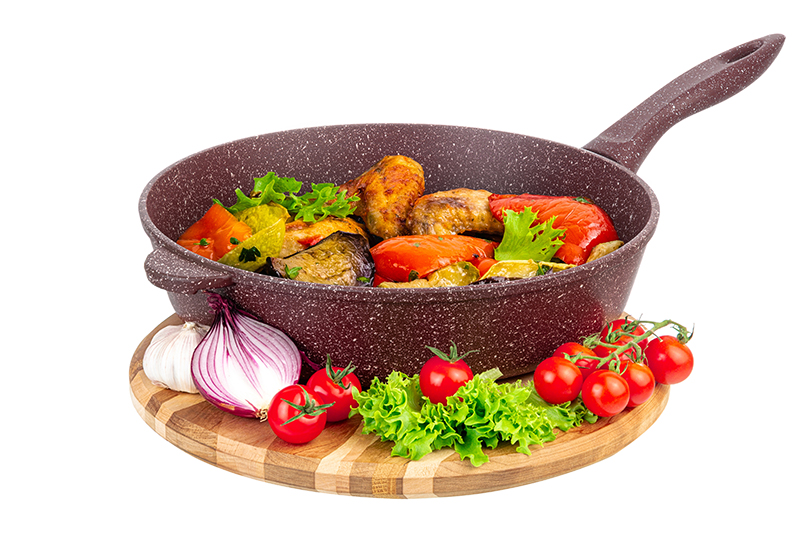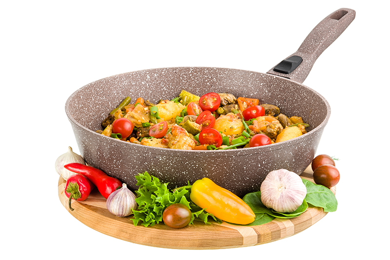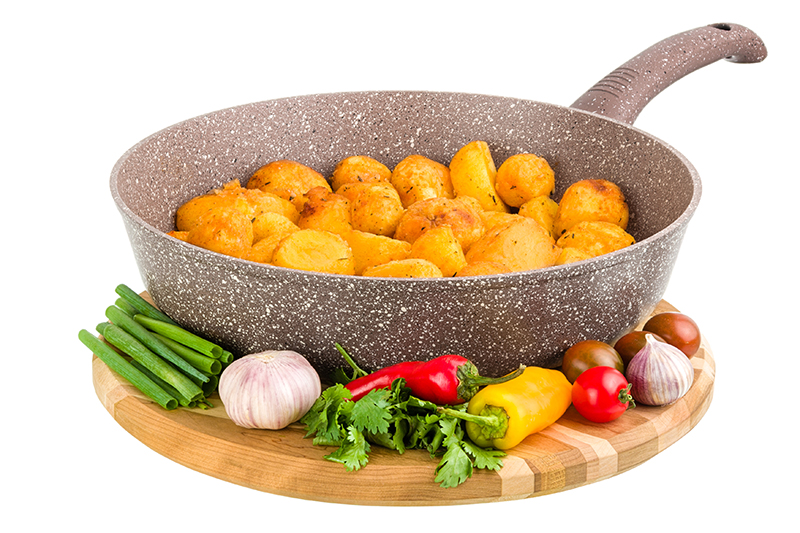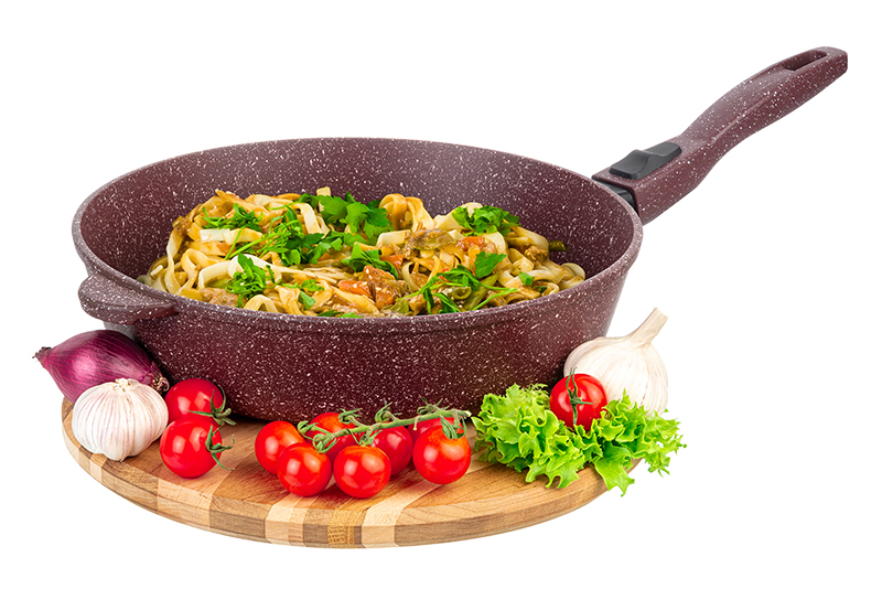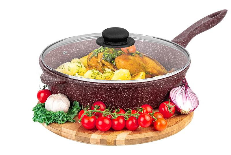 Без акции 2092 руб! Сковорода глубокая 28 см ГАРМОНИЯ ВКУСА "Коричневый мрамор" ИНДУКЦИЯ, без крышки, н/р, 48*29*8 см