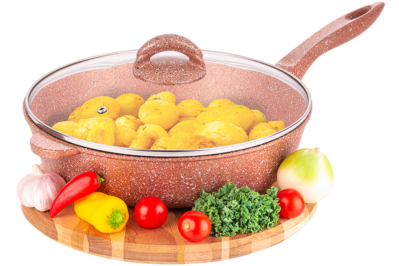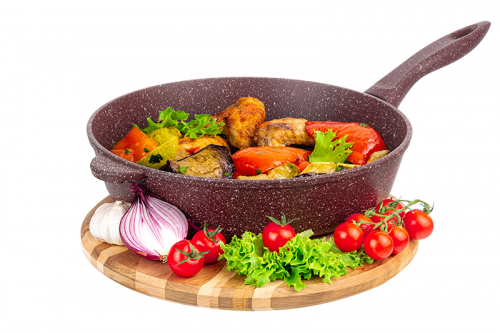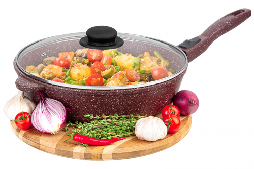 Без акции 2621 руб! Сковорода глубокая 28 см ГАРМОНИЯ ВКУСА "Коричневый мрамор" ИНДУКЦИЯ, без крышки, с/р, 49*29*10 см