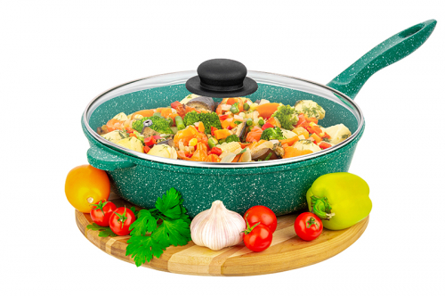Без акции 2999 руб! Сковорода глубокая 28 см ГАРМОНИЯ ВКУСА "Изумруд" С КРЫШКОЙ ф28, с/р, 51,5*29*12 см