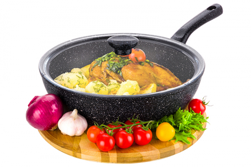 Без акции 2990 руб! Сковорода глубокая 28 см ГАРМОНИЯ ВКУСА "Рубин" С КРЫШКОЙ ф28, с/р, 51,5*29*12 см