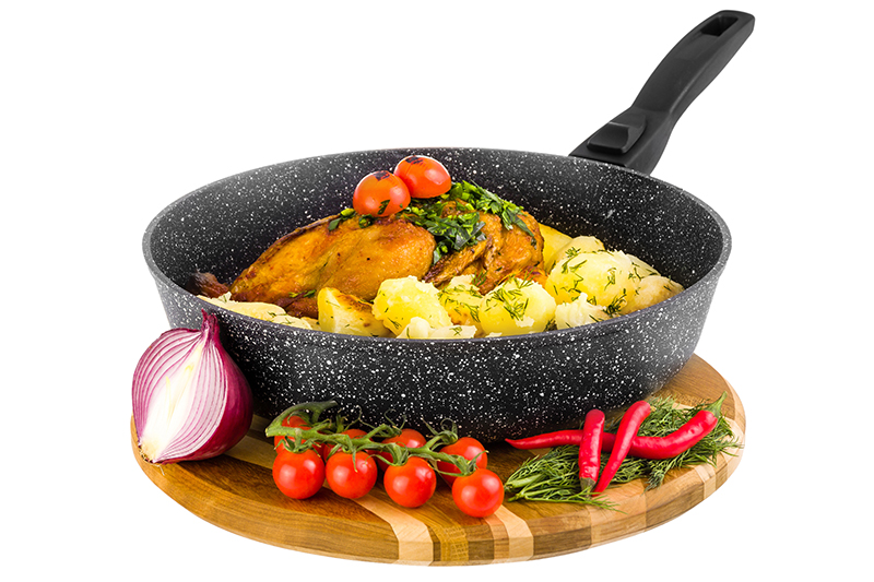 Без акции 2621 руб! Сковорода глубокая 28 см ГАРМОНИЯ ВКУСА "Черный мрамор" ИНДУКЦИЯ, без крышки, с/р, 49*29*10 см
