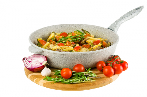 Без акции 2715 руб! Сковорода глубокая 28 см ГАРМОНИЯ ВКУСА "Серый мрамор" без крышки, с/р, 51,5*29*10 см
