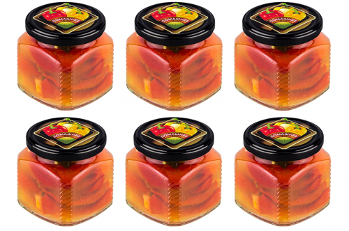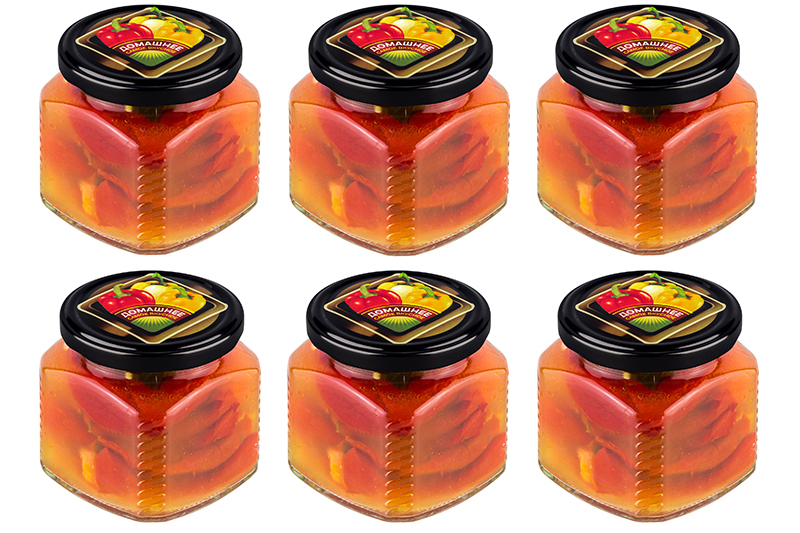 Набор 6 банок 390 мл 8,5*8,5*8,7 см с крышками "Перец" ТО-82 мм 8,2*8,2*0,8 см