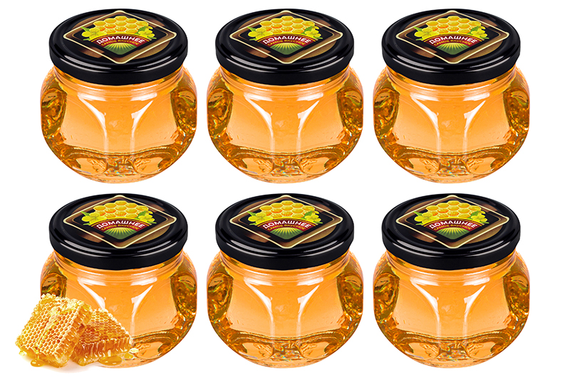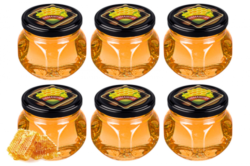 Набор 6 банок 350 мл 8,5*8,5*8,5 см с крышками "Мед" ТО-82 мм 8,2*8,2*0,8 см