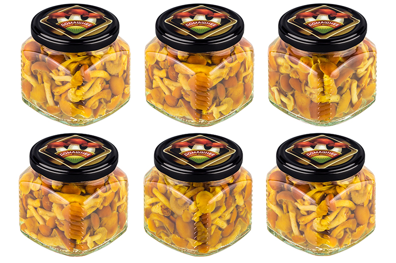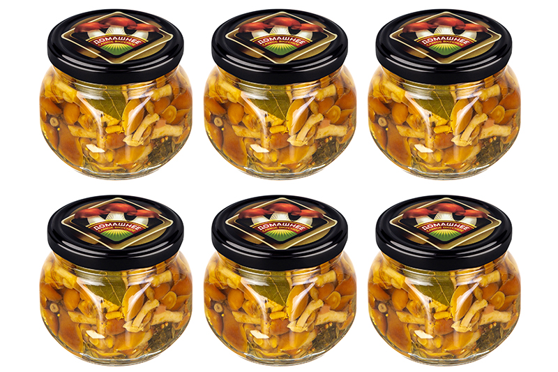 Набор 6 банок 390 мл 8,5*8,5*8,7 см с крышками "Грибочки" ТО-82 мм 8,2*8,2*0,8 см