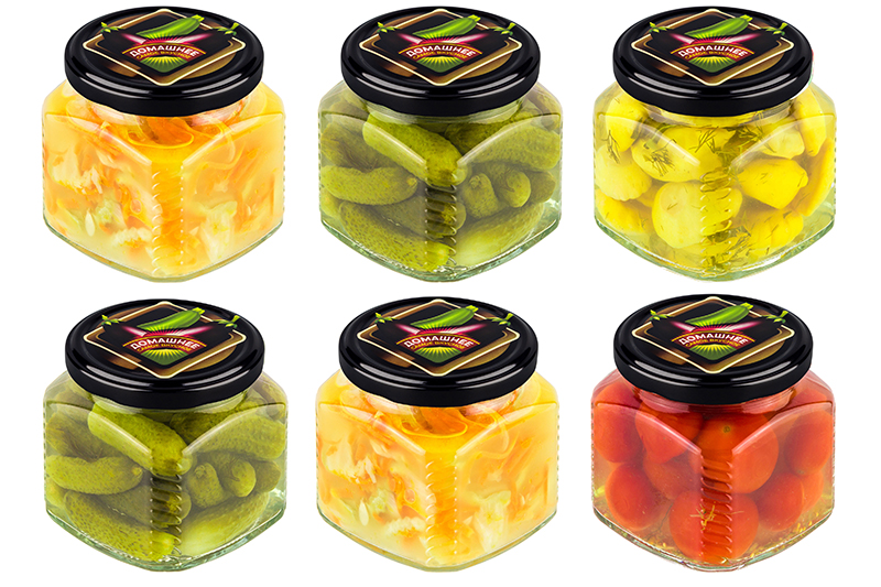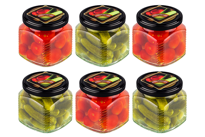 Набор 6 банок 390 мл 8,5*8,5*8,7 см с крышками "Огурцы и помидоры" ТО-82 мм 8,2*8,2*0,8 см