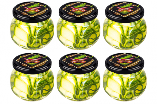 Набор 6 банок 390 мл 8,5*8,5*8,7 см с крышками "Баклажаны и кабачки" ТО-82 мм 8,2*8,2*0,8 см
