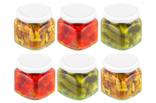 Набор 6 банок 250 мл 7,2*7,2*8,5 см с крышками белыми ТО-66 мм