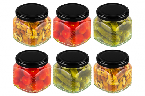 Набор 6 банок 250 мл 7,2*7,2*8,5 см с крышками черными ТО-66 мм