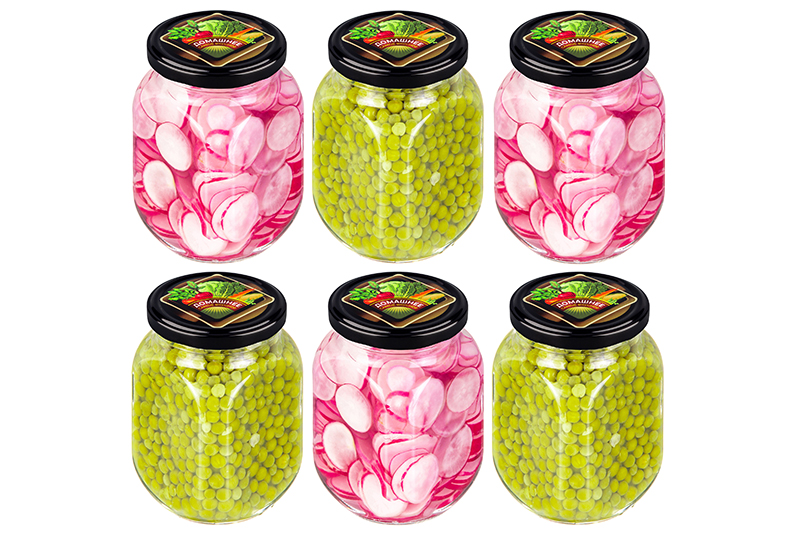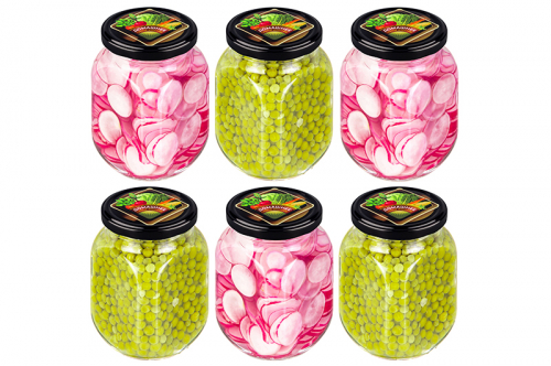 Набор 6 банок 900 мл 9,3*9,3*15,5 см с крышками "Овощной микс" ТО-82 мм 8,2*8,2*0,8 см