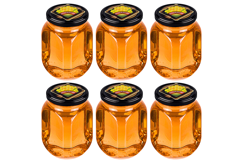 Набор 6 банок 900 мл 9,3*9,3*15,5 см с крышками "Мед" ТО-82 мм 8,2*8,2*0,8 см