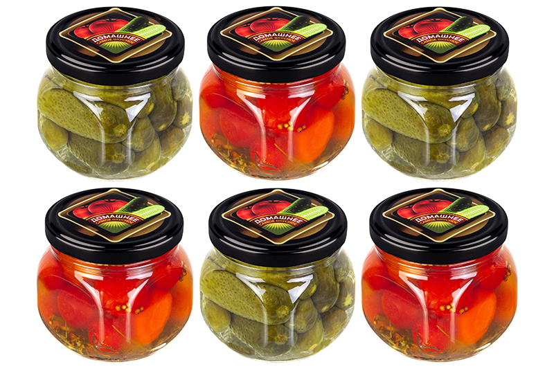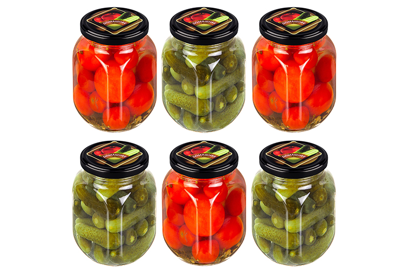 Набор 6 банок 900 мл 9,3*9,3*15,5 см с крышками "Огурцы и помидоры" ТО-82 мм 8,2*8,2*0,8 см