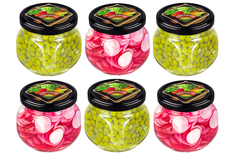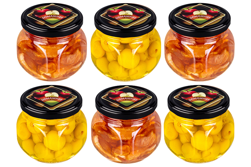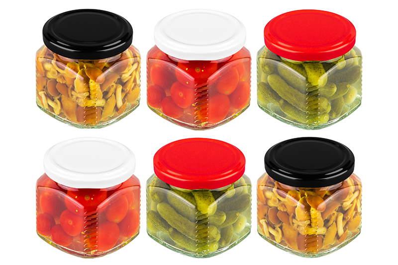 Набор 6 банок 250 мл 7,2*7,2*8,5 см с крышками черными/белыми/красными ТО-66 мм