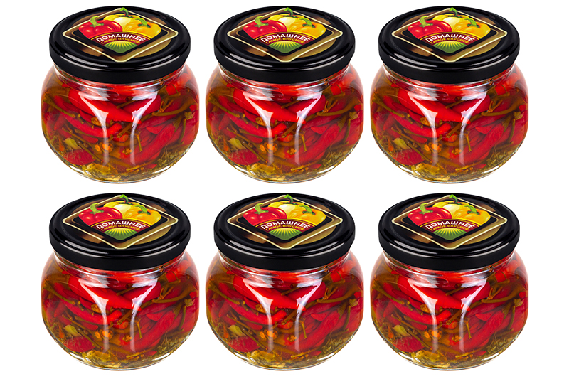 Набор 6 банок 350 мл 8,5*8,5*8,5 см с крышками "Перец" ТО-82 мм 8,2*8,2*0,8 см