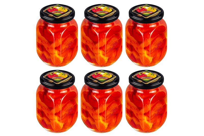 Набор 6 банок 900 мл 9,3*9,3*15,5 см с крышками "Перец" ТО-82 мм 8,2*8,2*0,8 см