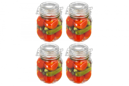 Набор 4 банок д/хранения 650 мл 12*8,5*15 см с крышкой с силикон.уплотнит. и металл зажимом