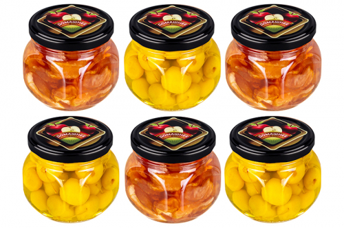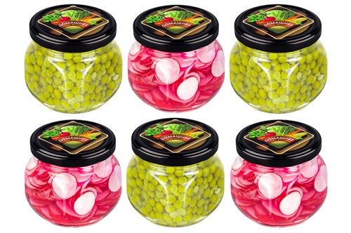 Набор 6 банок 350 мл 8,5*8,5*8,5 см с крышками "Овощной микс" ТО-82 мм 8,2*8,2*0,8 см