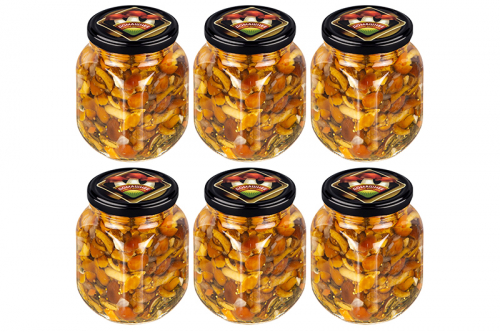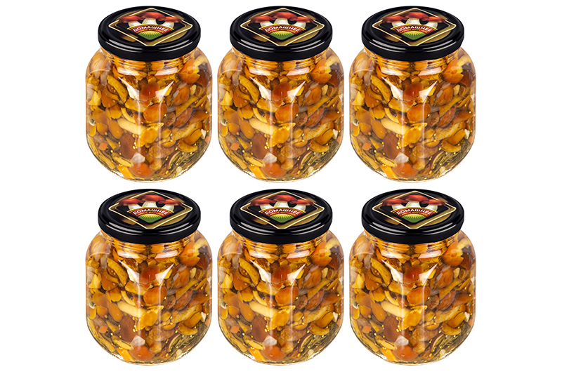 Набор 6 банок 650 мл 8,7*8,7*13 см с крышками "Грибочки" ТО-82 мм 8,2*8,2*0,8 см