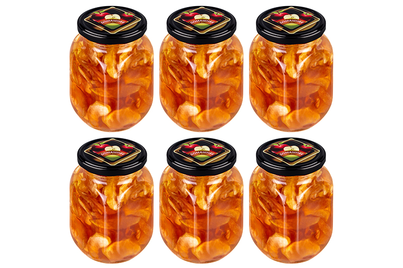 Набор 6 банок 650 мл 8,7*8,7*13 см с крышками "Яблоки" ТО-82 мм 8,2*8,2*0,8 см