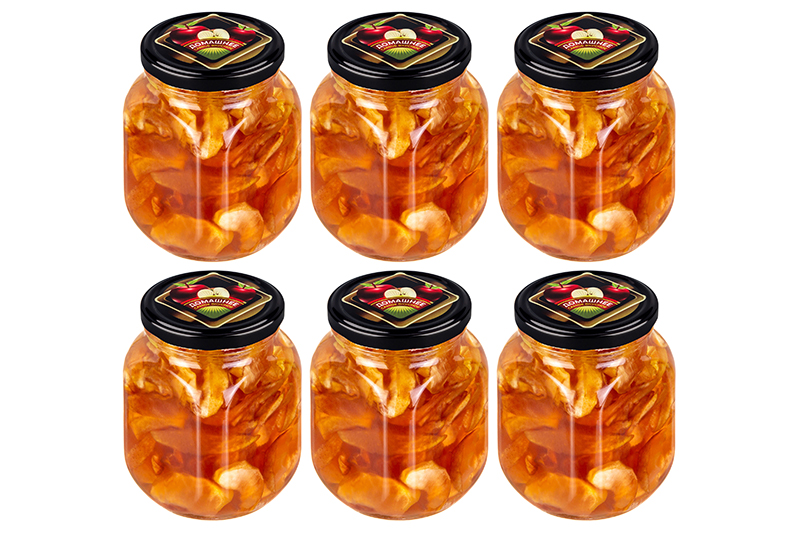 Набор 6 банок 350 мл 8,5*8,5*8,5 см с крышками "Яблоки" ТО-82 мм 8,2*8,2*0,8 см