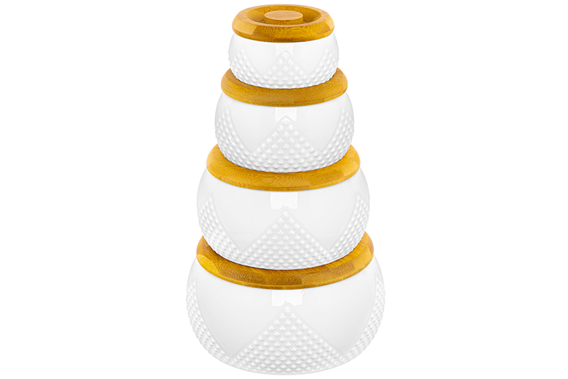 БЫЛО 1953 руб! Набор 4 банок д/хранения 100, 250, 450, 800 мл "Ромбики" с дер. крышками круглые