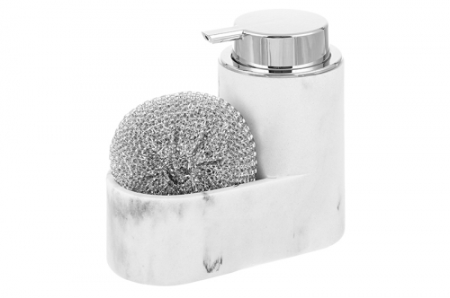 БЫЛО 876 руб! Диспенсер для жидкого мыла 300 мл 14,5*7,5*13,5 см "Мраморный узор" с отделением для губки + губка