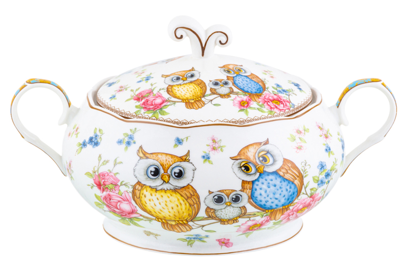 БЫЛО 1638 р! Пельменница - супница 30*22,5*18 см 2,6 л "Совушки" + крышка NEW BONE CHINA