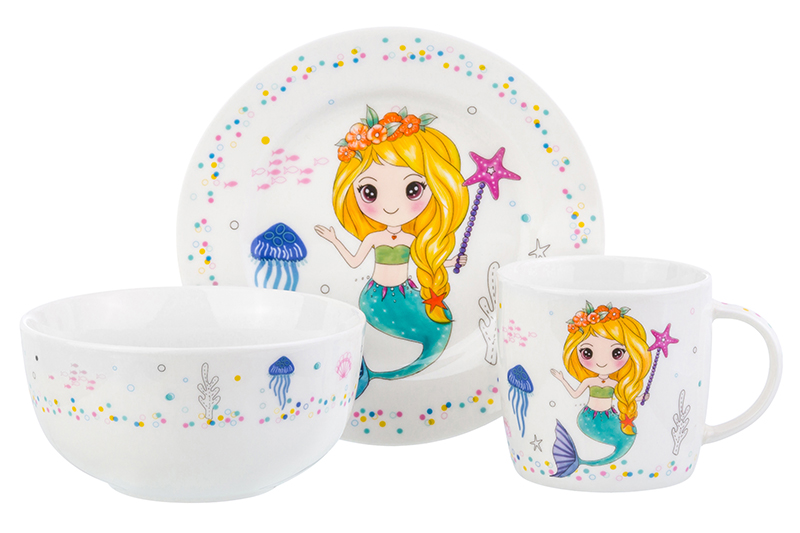 БЫЛО 873 р! Набор 3 пр. - кружка, миска, тарелка "Русалка с золотыми волосами"