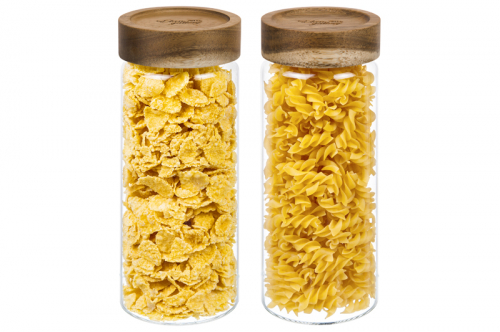 БЫЛО 1031 р! Набор 2 банок д/хранения 800 мл 8*8*21 см "Crystal glass" + закручивающ. крышка из акации, стекло