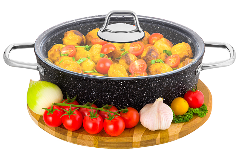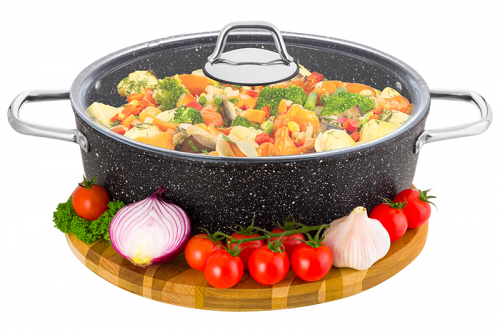 БЫЛО 3302 р! Жаровня (сотейник) 28 см 4,1 л "Fierra" черная С КРЫШКОЙ ф28, 39,5*29*14 см