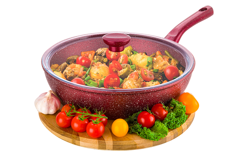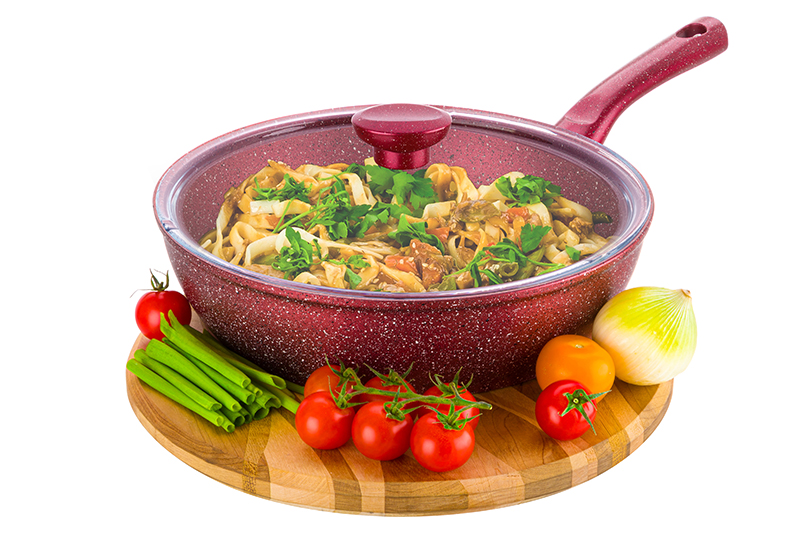 БЫЛО 2456 р! Сковорода глубокая 28 см "Fierra" красная С КРЫШКОЙ ф28, н/ручка, 47*29,5*12 см