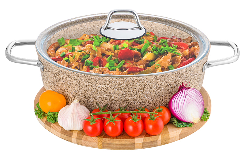 БЫЛО 3302 р! Жаровня (сотейник) 28 см 4,1 л "Fierra" бежевая С КРЫШКОЙ ф28, 39,5*29*14 см