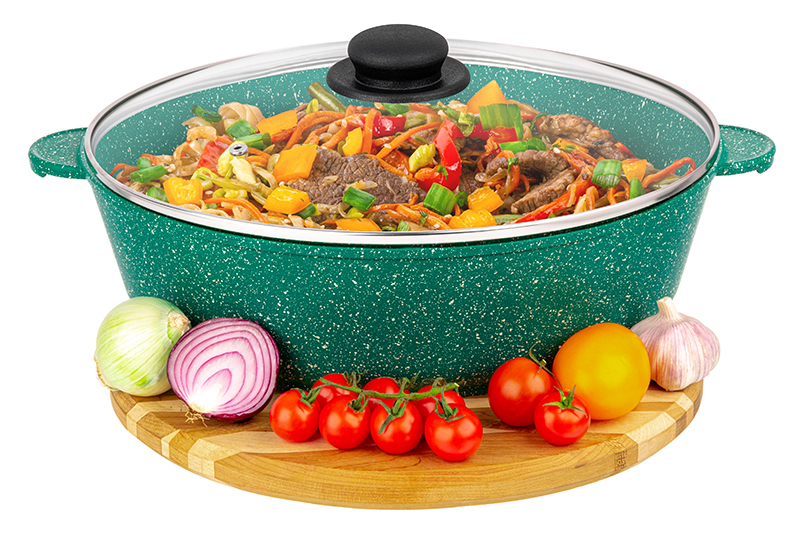 БЫЛО 3224 р! Жаровня (сотейник) 32 см 5,5 л ГАРМОНИЯ ВКУСА "Изумруд" С КРЫШКОЙ ф32, 38,5*33*15 см