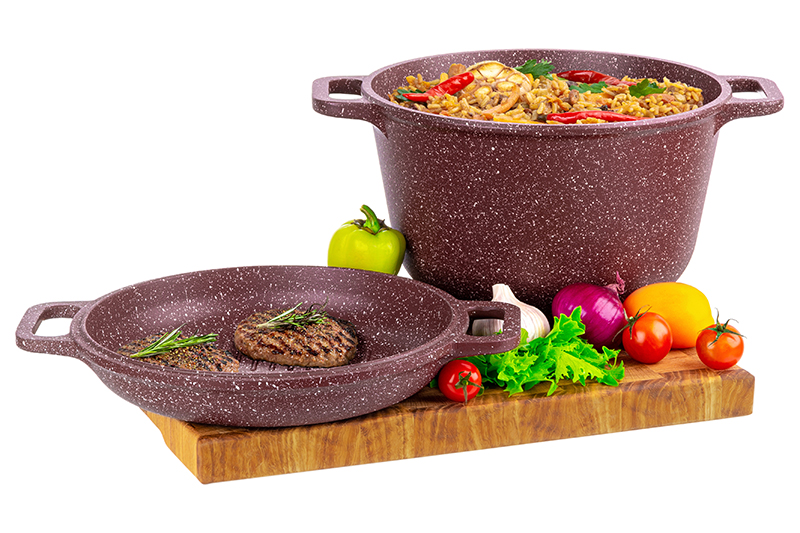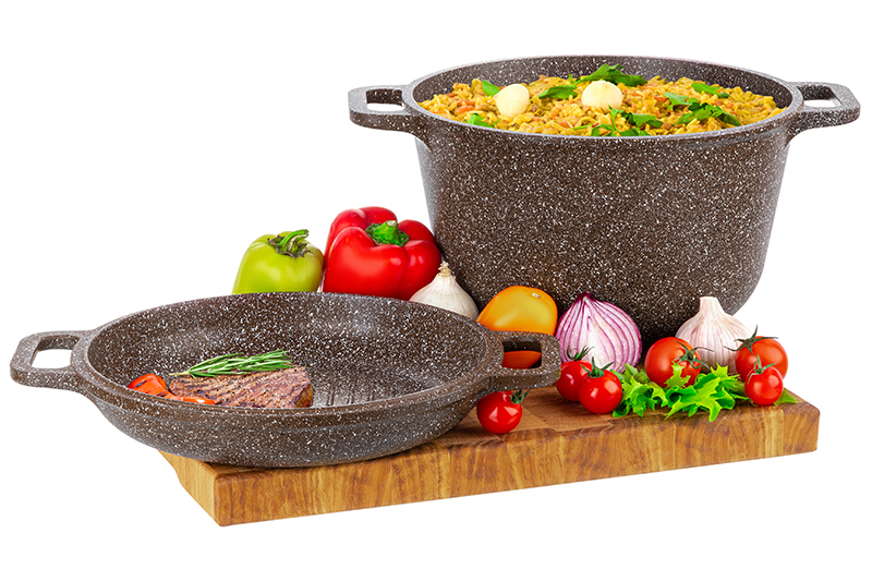 БЫЛО 3901 р! Казан 5 л ГАРМОНИЯ ВКУСА "Серый агат" с крышкой СКОВОРОДОЙ-ГРИЛЬ, 32*25,5*20 см
