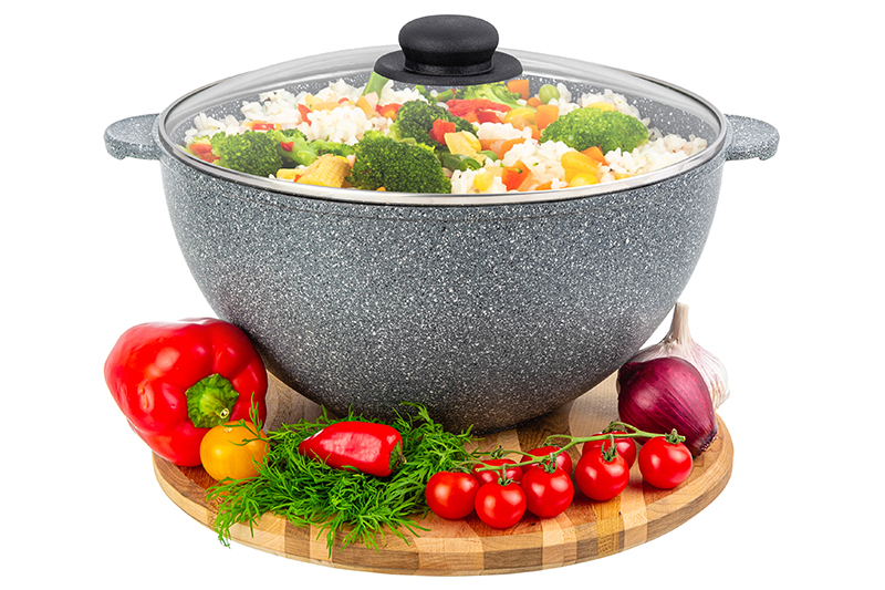 БЫЛО 2866 р! Казан 6 л ГАРМОНИЯ ВКУСА "Серый мрамор" С КРЫШКОЙ ф28, 34,5*29,5*19,5 см