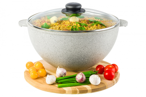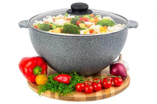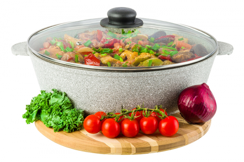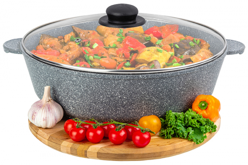 БЫЛО 3224 р! Жаровня (сотейник) 32 см 5,5 л ГАРМОНИЯ ВКУСА "Серый мрамор" С КРЫШКОЙ ф32, 38,5*33*15 см