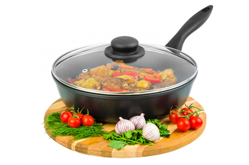 БЫЛО 2041 р! Сковорода глубокая 28 см ГАРМОНИЯ ВКУСА "Черный Оникс" С КРЫШКОЙ ф28, с/р, 51,5*29*12 см