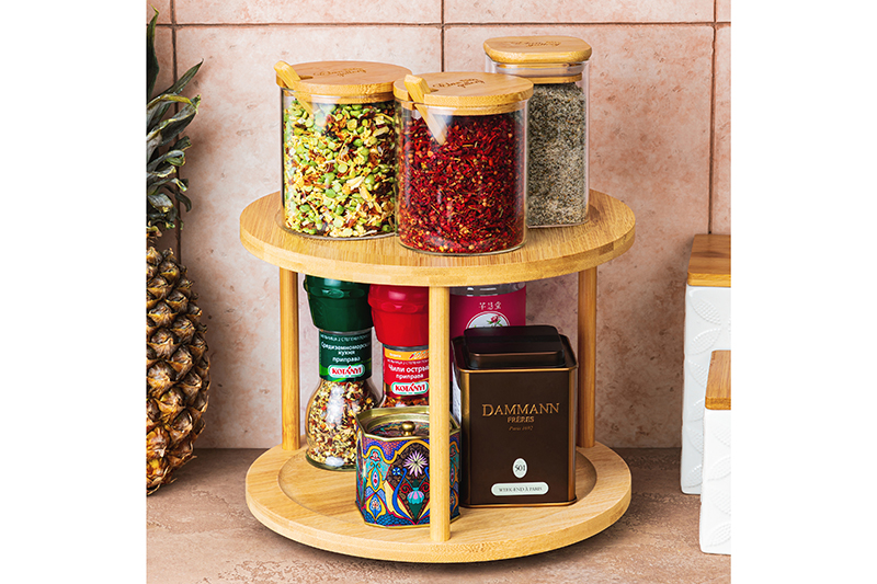 Подставка 2-уровневая 24,5*24,5*17,5 см, многофункциональная, вращающаяся, бамбук