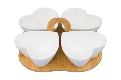 БЫЛО 1552 руб!! Менажница 27,5*27,5*10,5 см "Белое сердце" 4 секции на дерев. подставке с ручкой