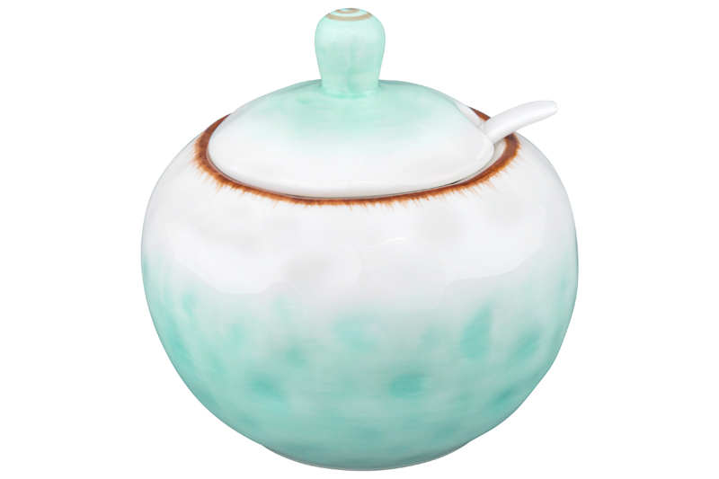 БЫЛО 674 руб!! Сахарница 380 мл 10,2*10,2*10,5 см "Кантри" + ложка, бирюзовая