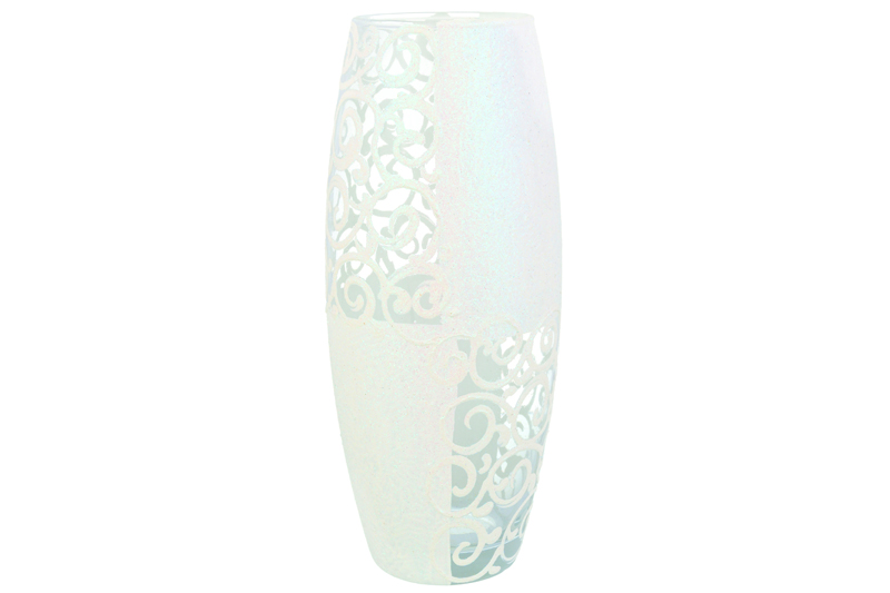 Ваза 11*11*26 см "Белый цветок на черном" бочонок
