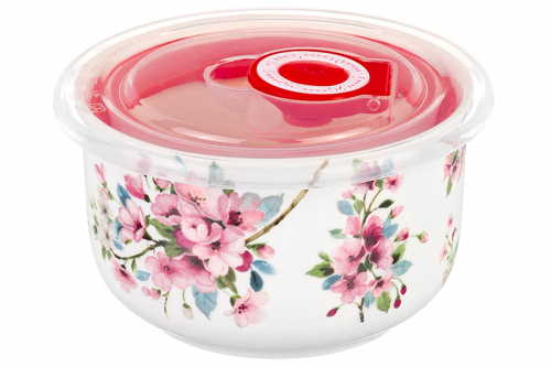 Салатник 10,5*10,5*6 см 260 мл "Яблоневый цвет на белом" с пласт. крыш. с сил.уплотн.,без зол.каемки