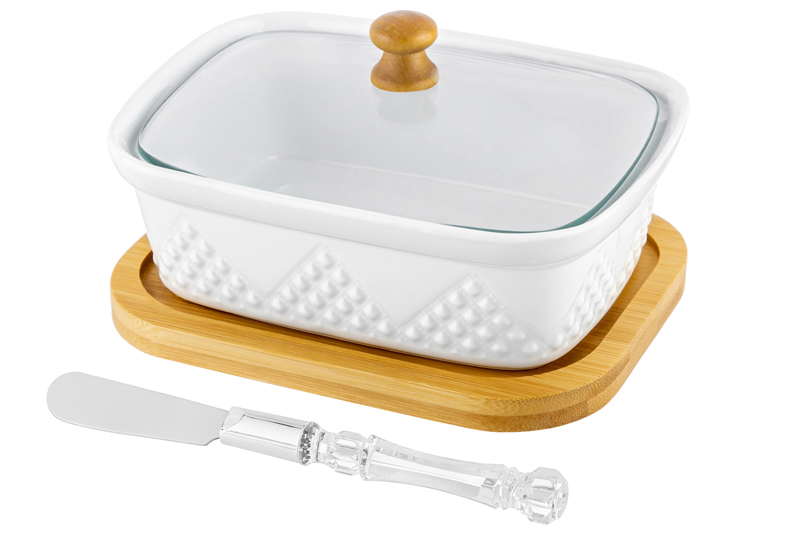 БЫЛО 628 руб! Паштетница 14,5*11*9 см 330 мл "Ромбики" со стекл. крышкой на дер подставке + нож