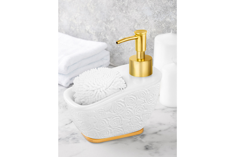 БЫЛО 810 руб! Диспенсер 15,5*8,5*15,5 см 500 мл "Розы" + губка на дер. подстав