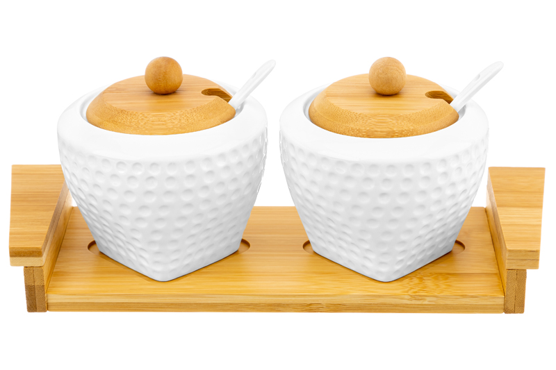 БЫЛО 1004 руб! Набор 2 сахарниц 350 мл 26*10*10,5 см "Сфера" + ложки + дер. крышки на дер. подставке.