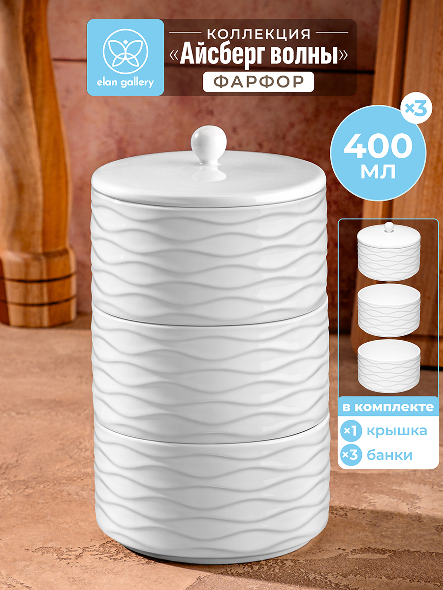 Банка д/хранения 3-х секционная 400 мл 11,5*11,5*21 см "Айсберг волны" с крышкой, фарфор