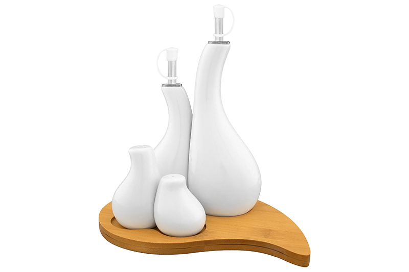 БЫЛО 1286 руб! Набор для специй и масла/уксуса/соев.соуса 4 пр. 24*16*23 см "Айсберг" на дер. подставке